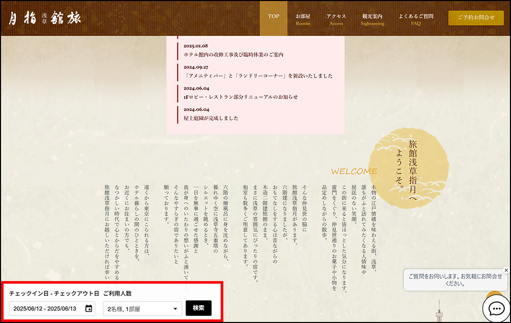 平素より「旅館 浅草 指月」をご利用いただき誠にありがとうございます。