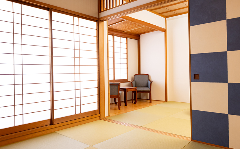 6畳間2間をつなげたユニークなスィートルームとなっております。