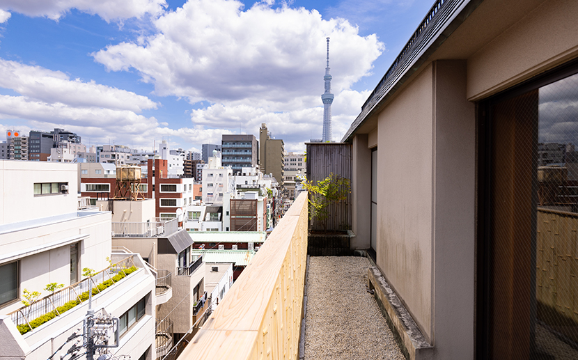 ベランダからは正面に浅草寺、右手には東京スカイツリーの景色を望むことができます。